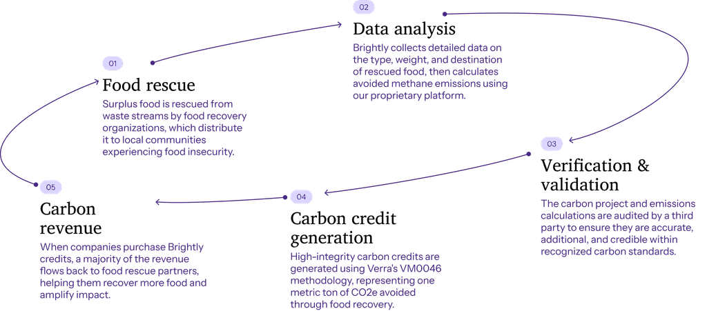 Brightly partners with food banks to generate high-integrity carbon credits, creating a new and sustainable funding source.